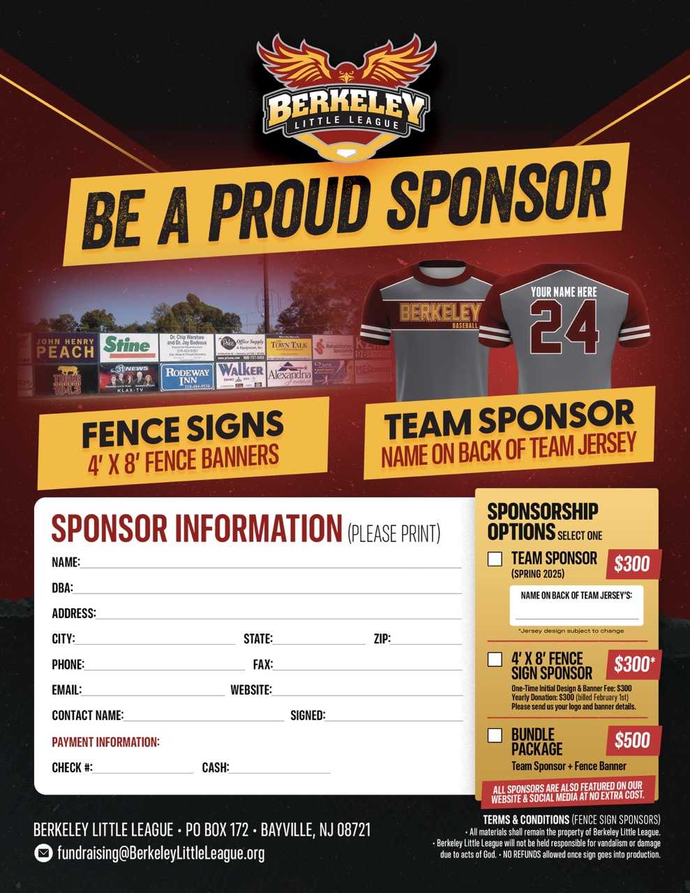 We also have a 4'x8' Fence Sign Sponsorship, where your fence sign will be on display for both our Spring and Fall 2026 season.